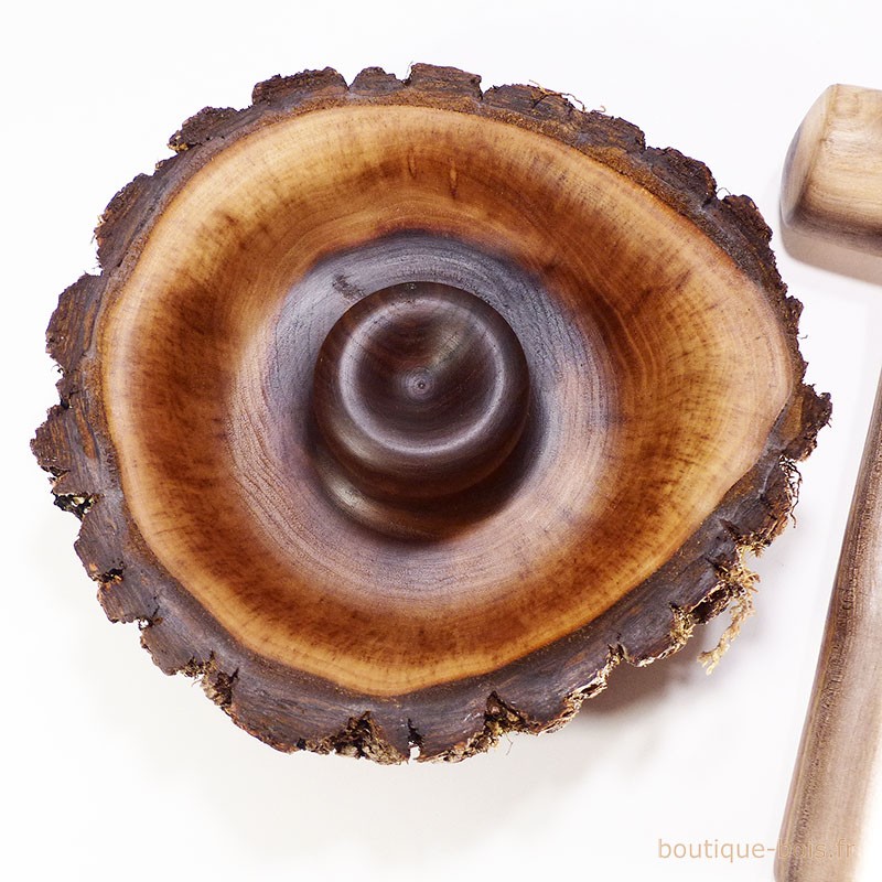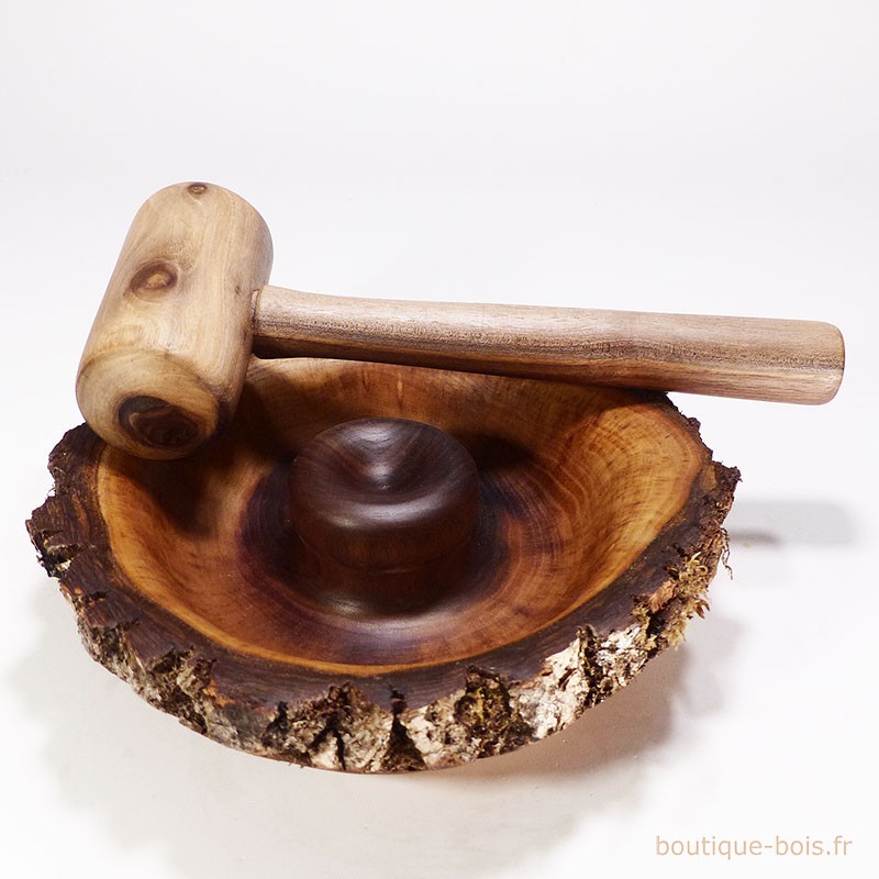 Le casse-noix en bois avec maillet est un objet artisanal, fonctionnel et décoratif.