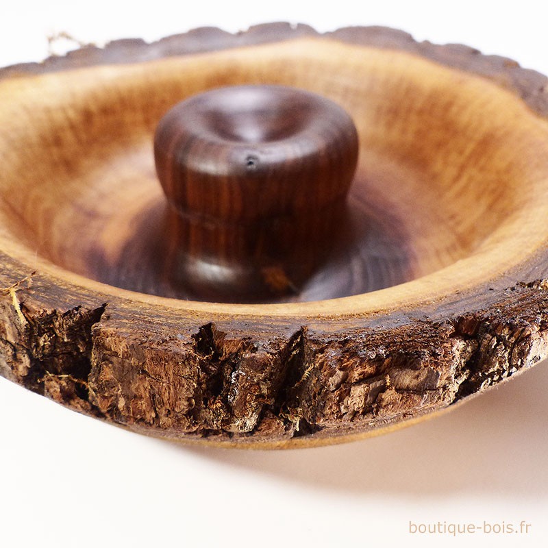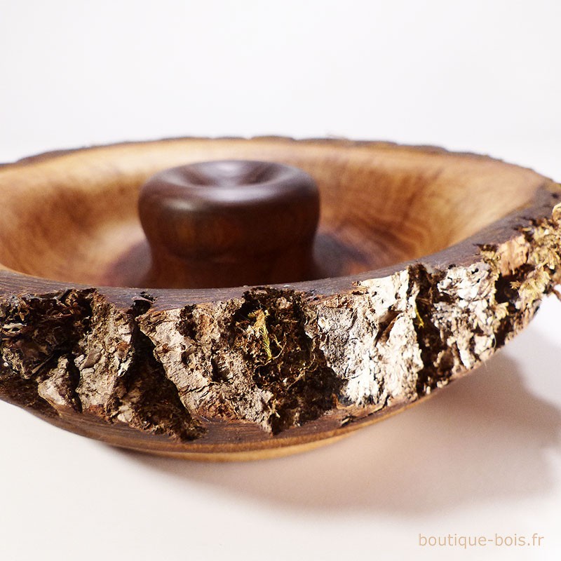 Casse-noix en bois de noyer avec écorce naturelle, coupe à fruits secs et outil pour casser noix, noisettes et autres petits fruits à coque.
