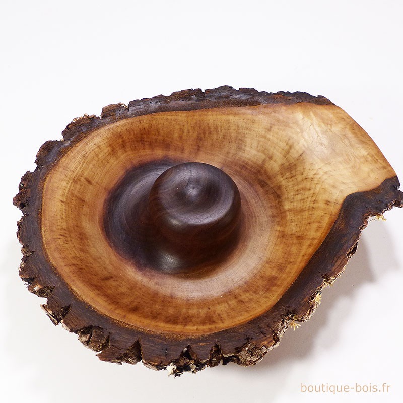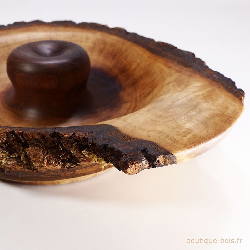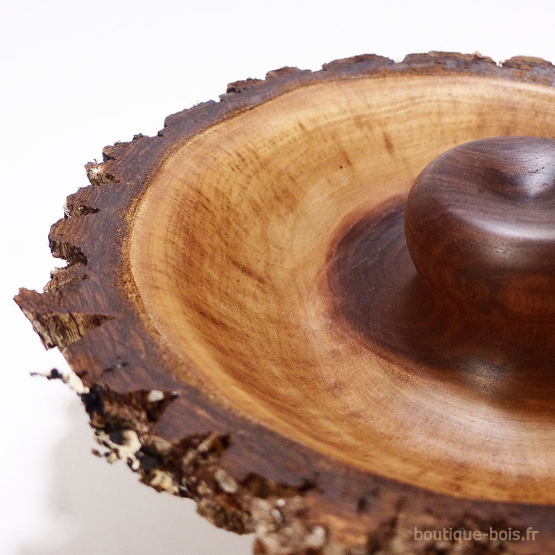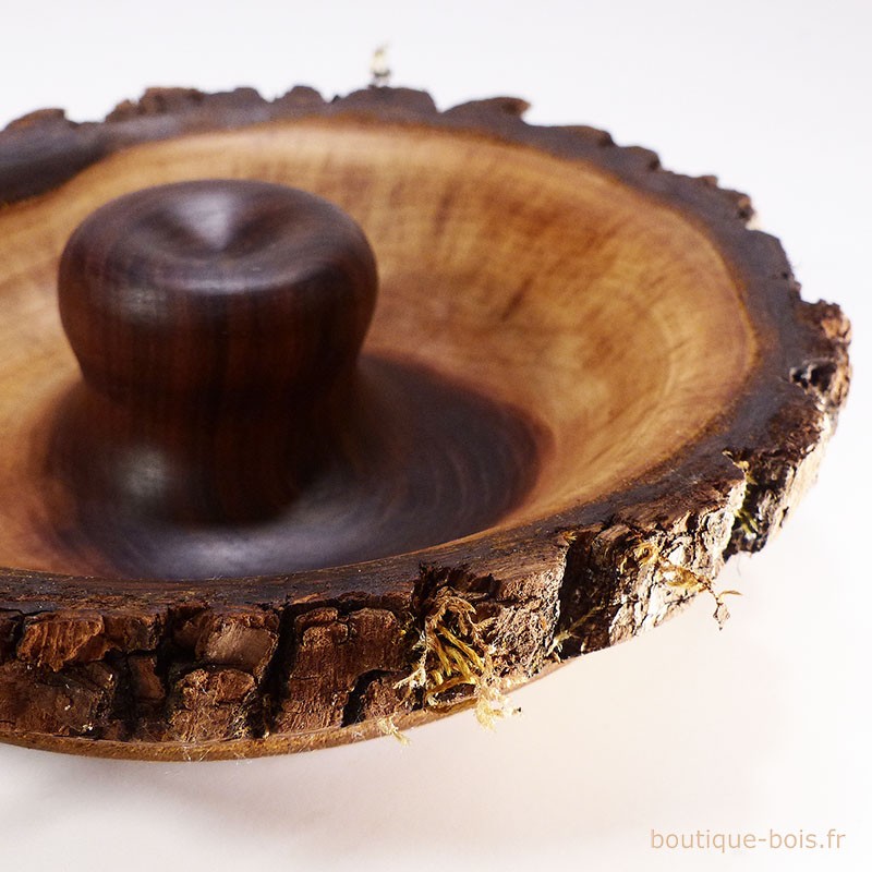 Casse-noix en bois de noyer avec écorce naturelle, coupe à fruits secs et outil pour casser noix, noisettes et autres petits fruits à coque.
