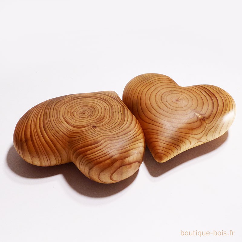 Un cœur en bois sculpté, tout doux qui sent bon le cèdre.