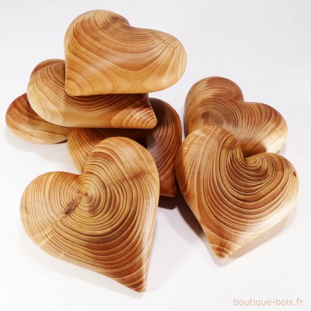 5 cœurs en bois de cèdre d'après le modèle de cœur en bois de cèdre du site.