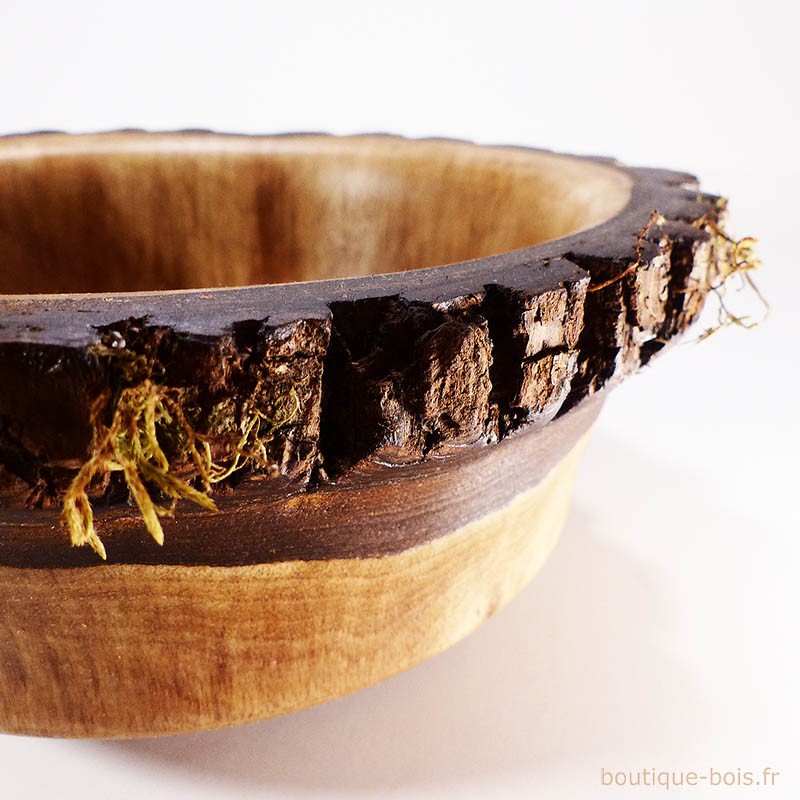 Voici une jolie petite coupe à fruits avec l'écorce naturelle de la branche de noyer dans laquelle elle a été tournée.