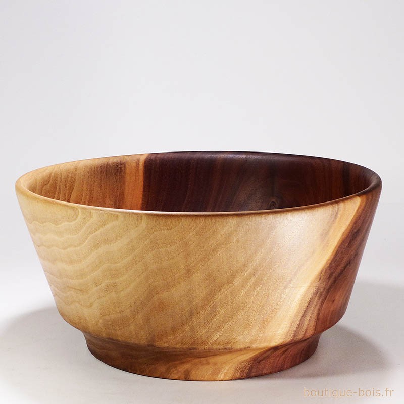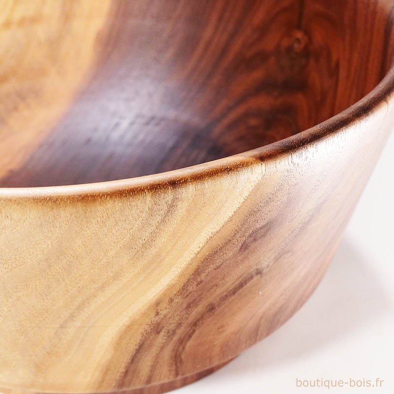 Le bois de noyer massif dans lequel a été tourné ce saladier allie beauté et solidité.