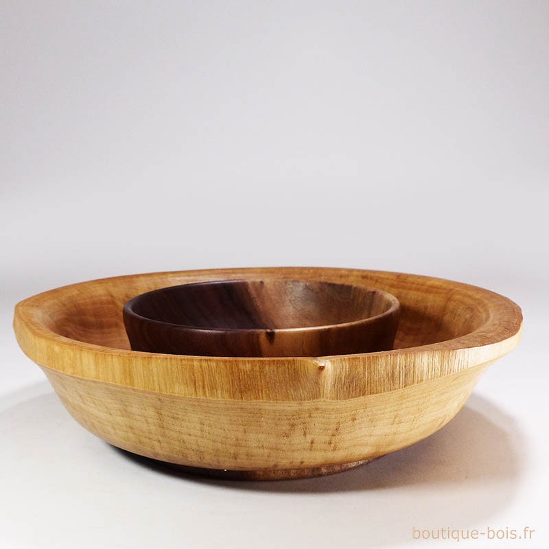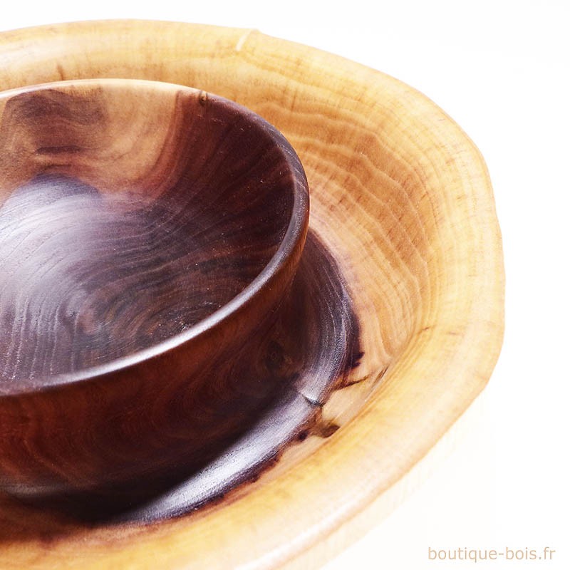 Le superbe bois de noyer dans lequel a été tourné ce saladier, en bois massif, allie beauté et solidité.